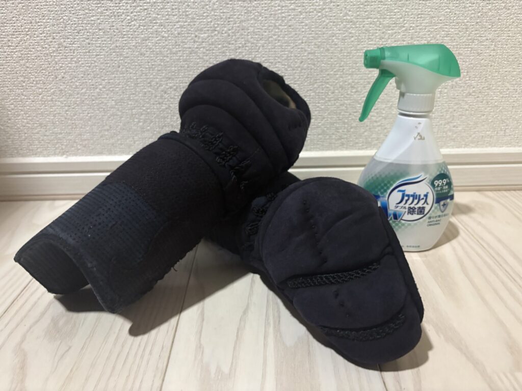 確認の意味をこめて、汗を乾かす、稽古後に消臭スプレーを吹きかけることは最低限おこないましょう。ファブリーズやリセッシュなど剣道用のものでなくても構いません。